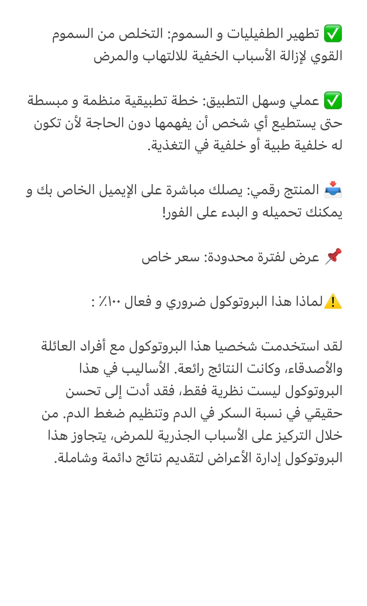 Based on my previous experience with treatment protocols, I found a significant improvement in my health, so I purchased this protocol as well because I am sure of its effectiveness, as Dr. Bint Al-Huda is the one who designed this program, and that is enough.